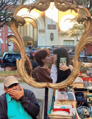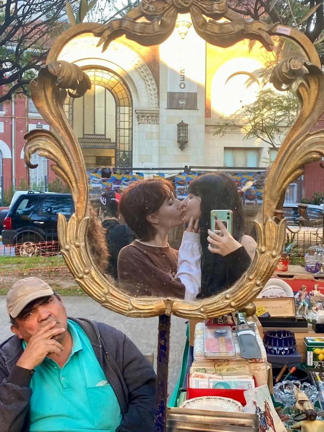 De prijs voor deze vintage spiegel ging zojuist omlaag, als de dames tenminste geen haast hadden.