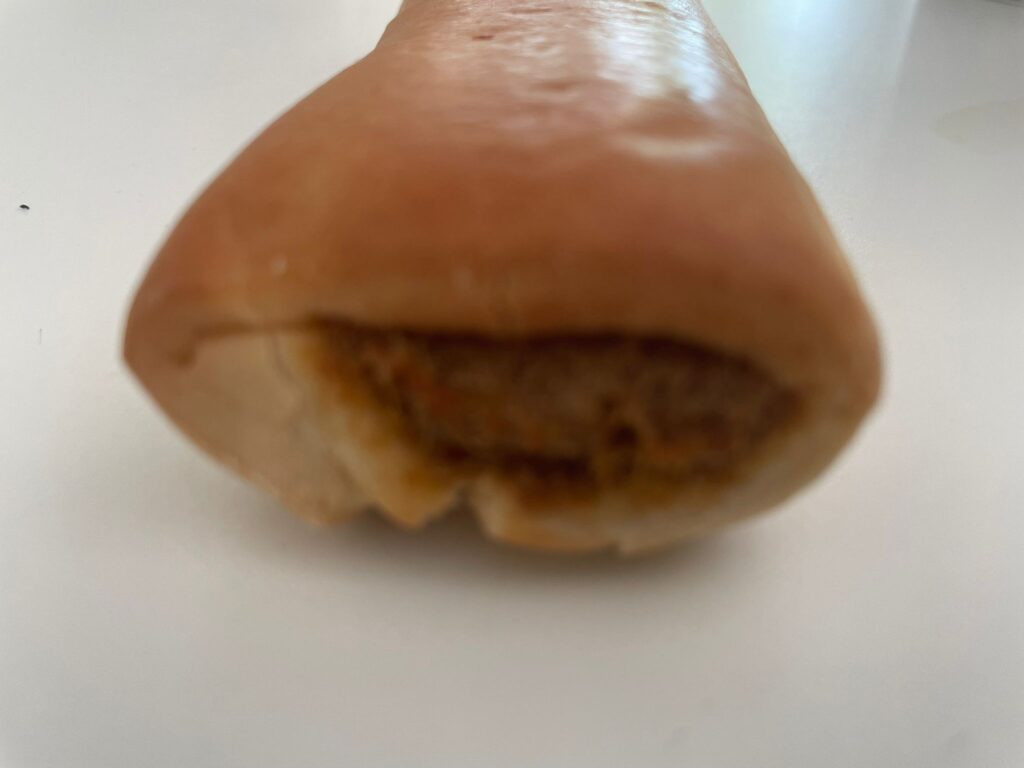 Maar we dwalen af. Sowieso leidt iets anders dan een dode dieren-vulling tot een bunkerharde diskwalificatie, maar daarnaast zien deze Vega-worstenbroodjes eruit alsof ze uit een treurige, roestige, oude Oostblok-fabriek komen. Waar collega-voedselproducenten nog wel eens de schijn van Ambachtelijkheid proberen te veinsen is hier wijselijk niet eens een poging gedaan. In essentie is het een vega-pil met een lap brooddeeg er omheen gevouwen, wat resulteert in open uiteindes. Ja, gruwelt u gerust even. Een Worstenbroodje met Een Open Einde: in Brabant krijg je voor minder al slaande ruzie.