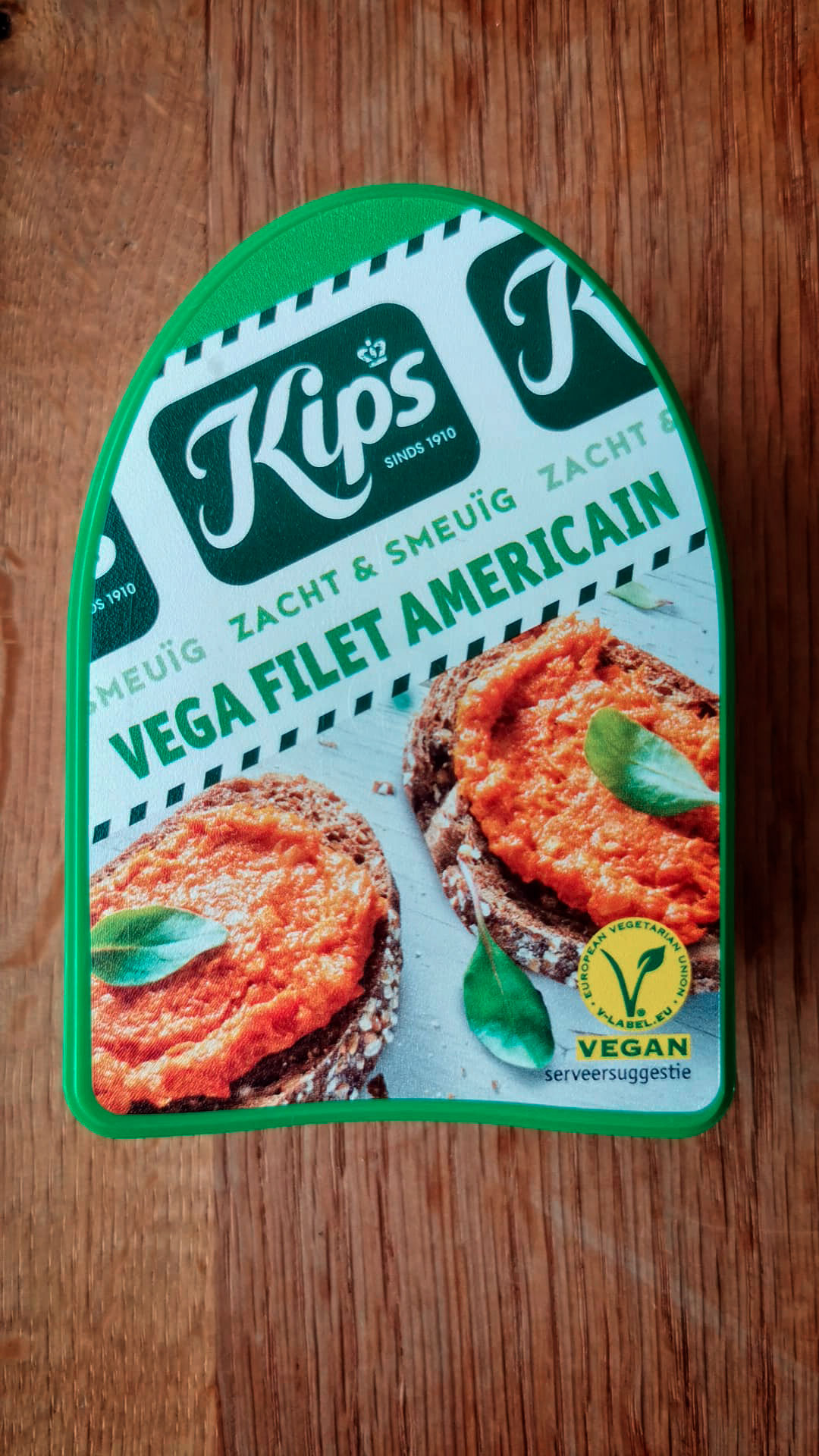 Positief na de vorige poging tot ontvlezing met de Kips Smeerworst, tjopte we vol goede moed de filet americain van dezelfde fabrikant in de boodschappenkar.