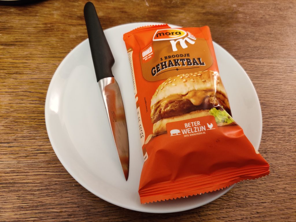 Dat paard heeft zijn weg, in gepureerde vorm, gevonden in deze snack van de koningen van Mora. In de vriezer in de supermarkt in een verpakking, een gehaktbal in een broodje. Mocht u dus met uw vooruitziende blik inschatten dat u vanavond met “een paar biertjes achter de huig” binnen komt zwalken, bindend stemadvies, koop dit niet.