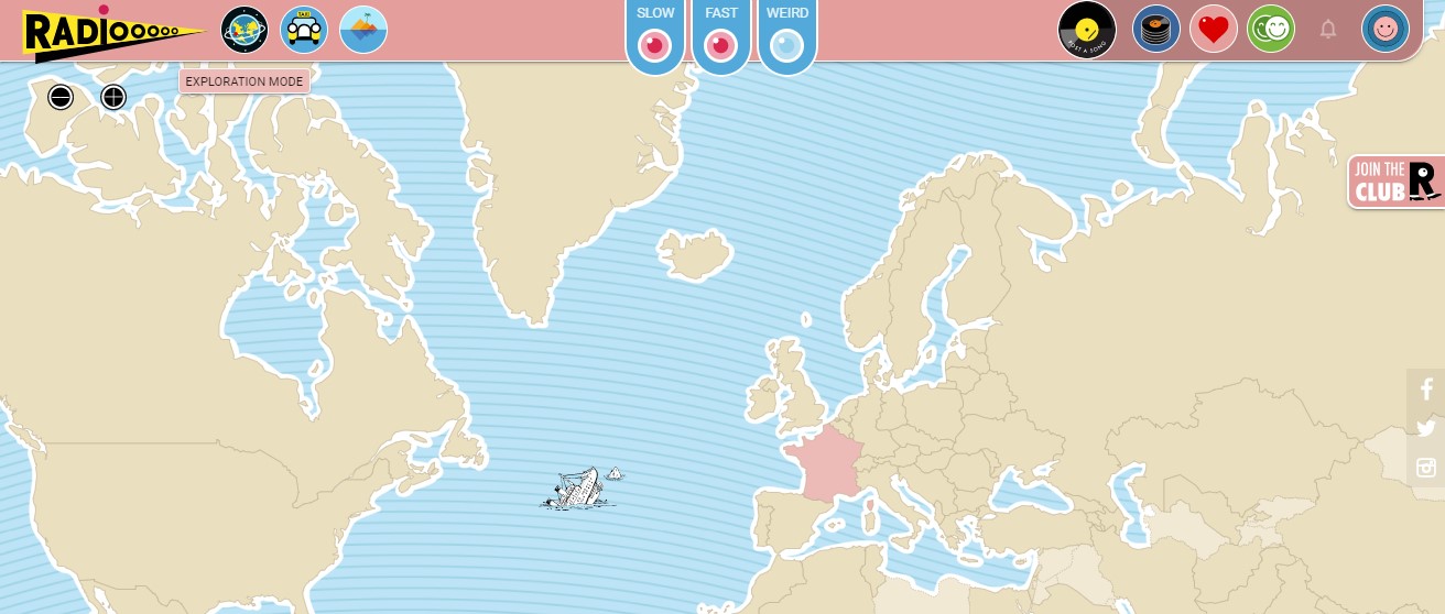 Kies Shuffle voor meerdere landen en decennia, of kies Island Mode voor een thematische afspeellijst. Vergeet ook niet om de Weird Button aan te tikken bovenaan in beeld: alstublieft. Tenslotte, zelf iets toevoegen aan de catalogs kan ook. Deel je vondst in de reacties. Danks!