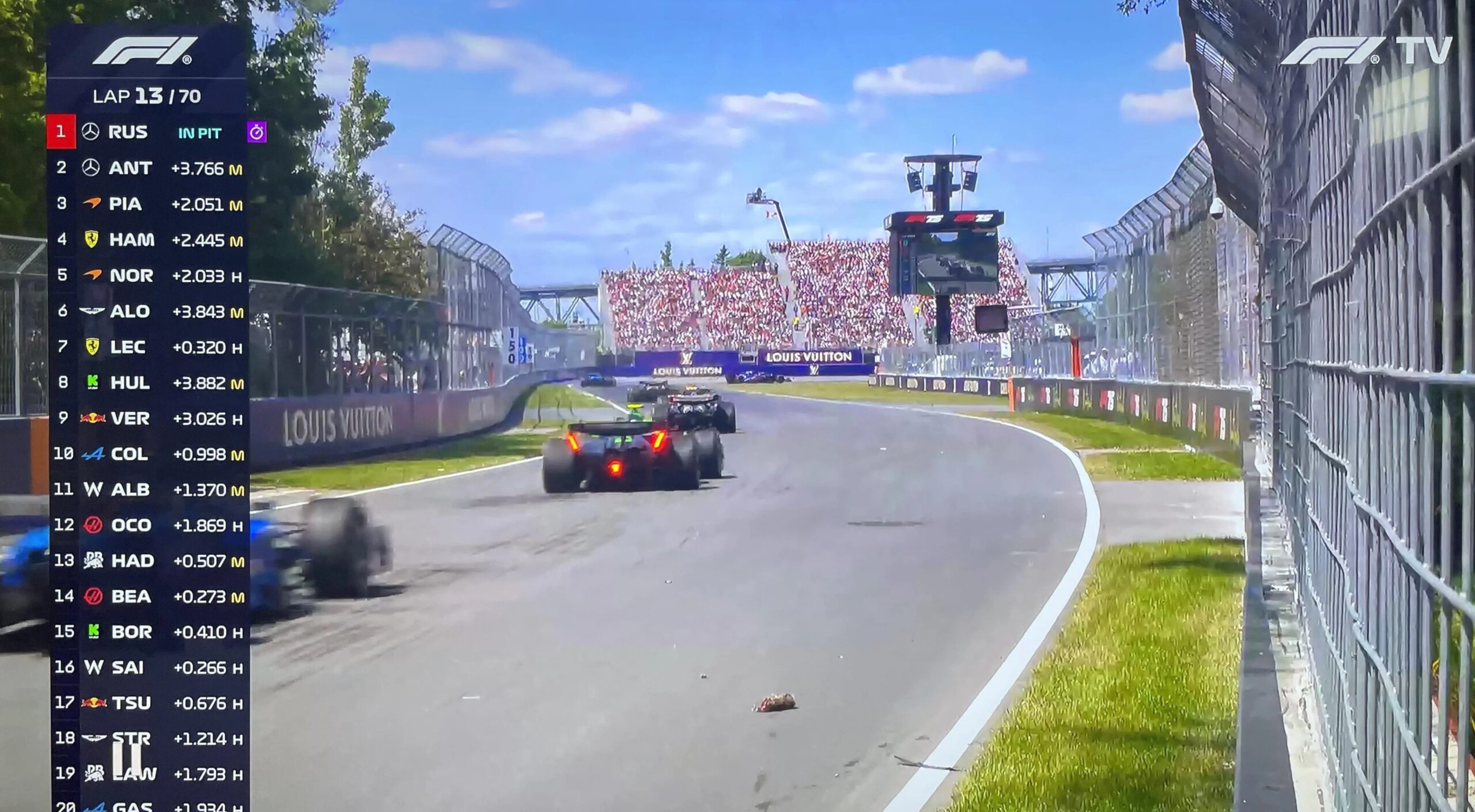 Antonelli DRS op Verstappen, maar die gaat pitten
