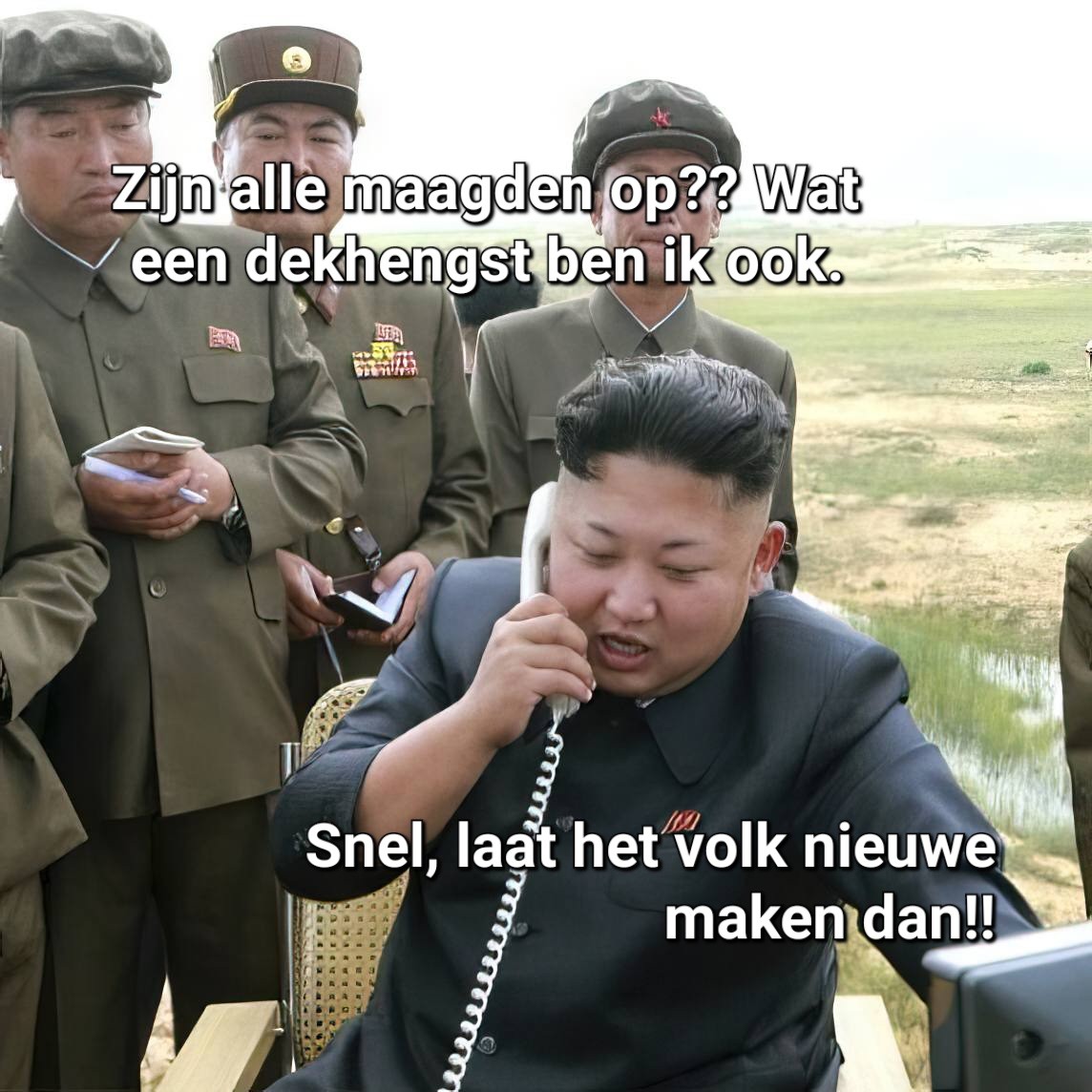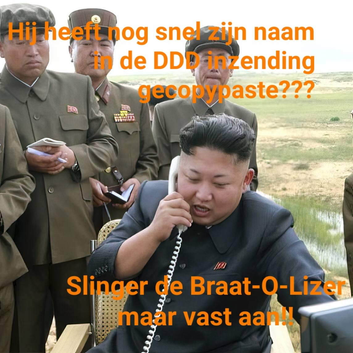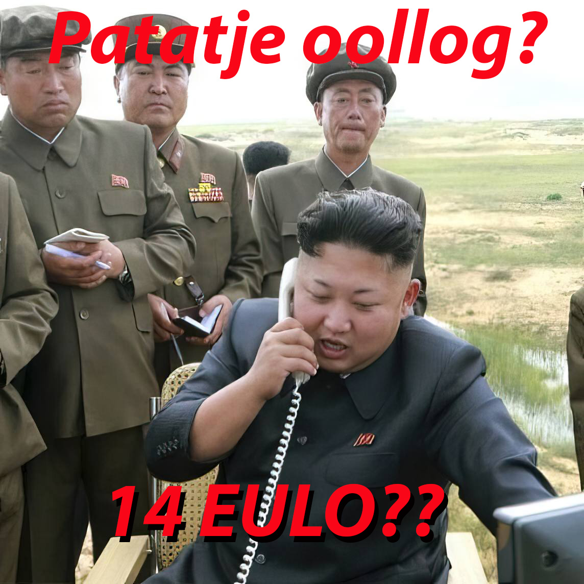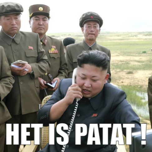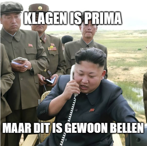 Een RC-chat specifieke is die van Onze Grote Leider die licht geagiteerd iets in een *telefoonhoorn blaft: