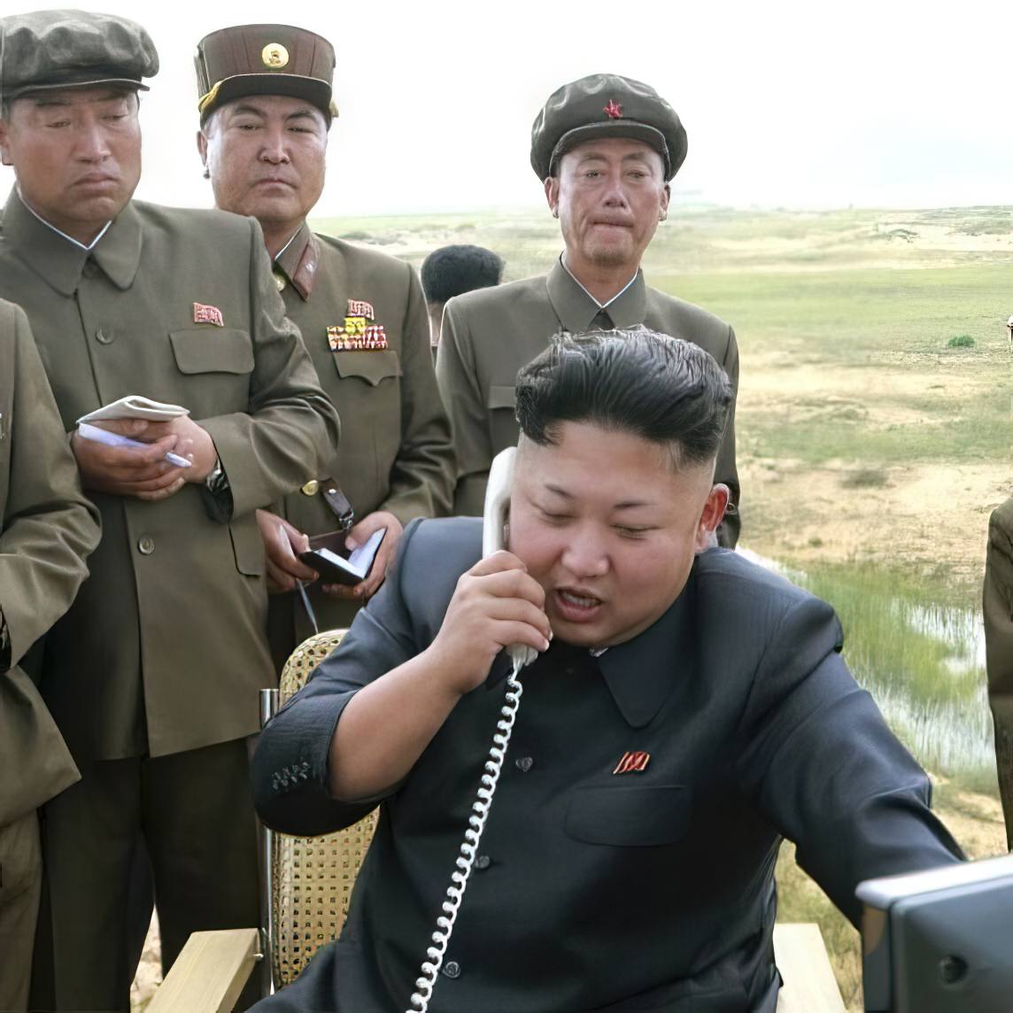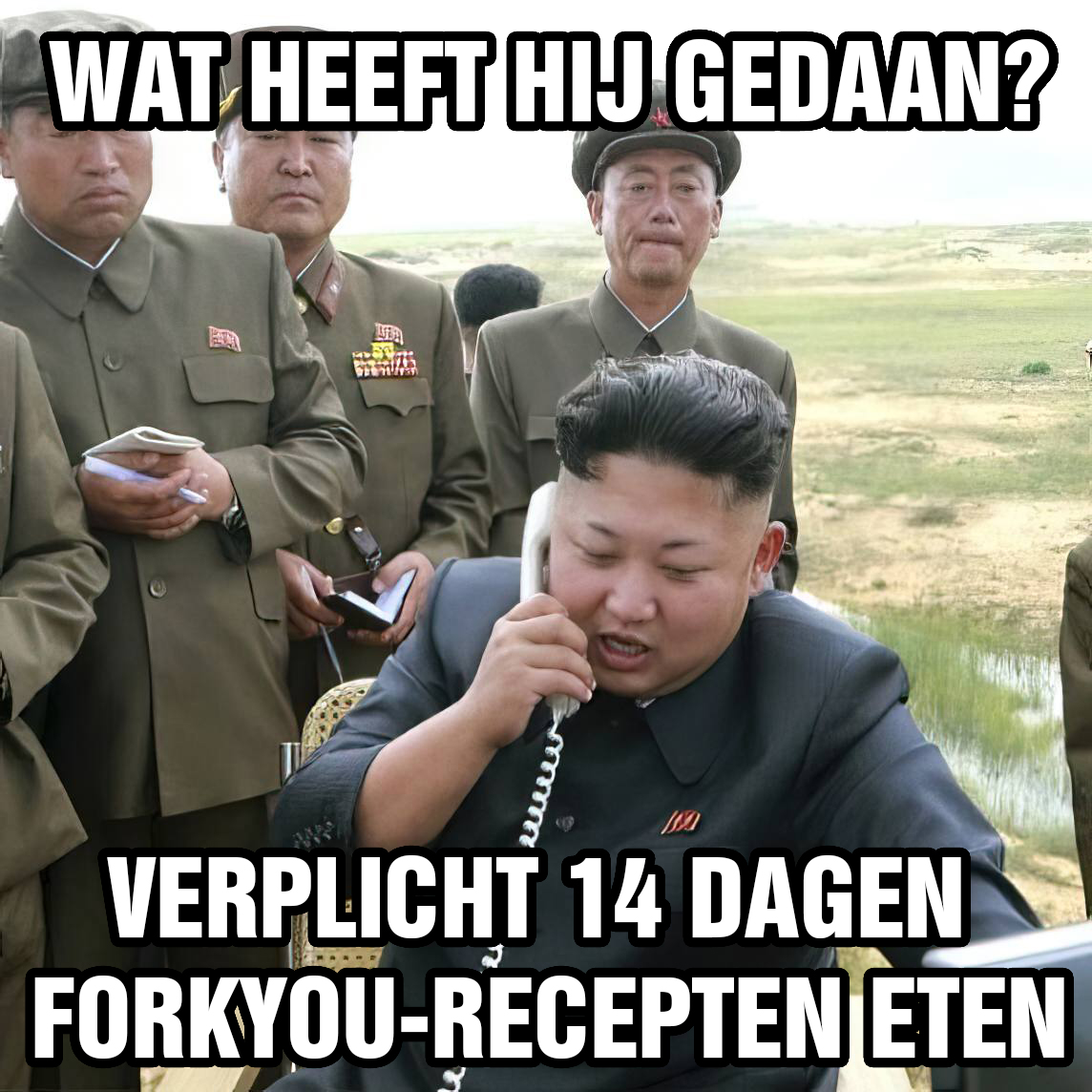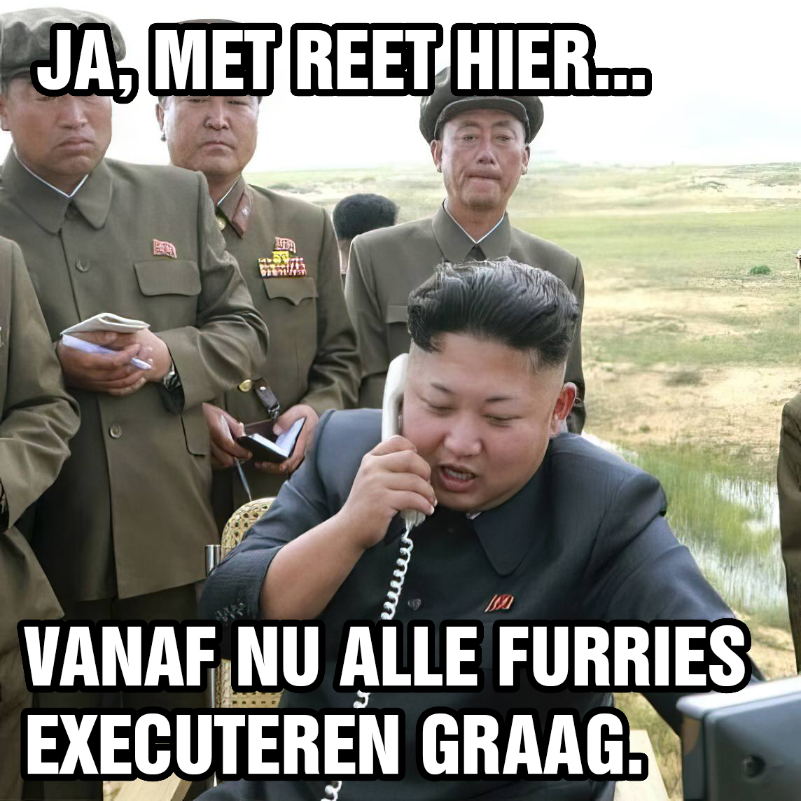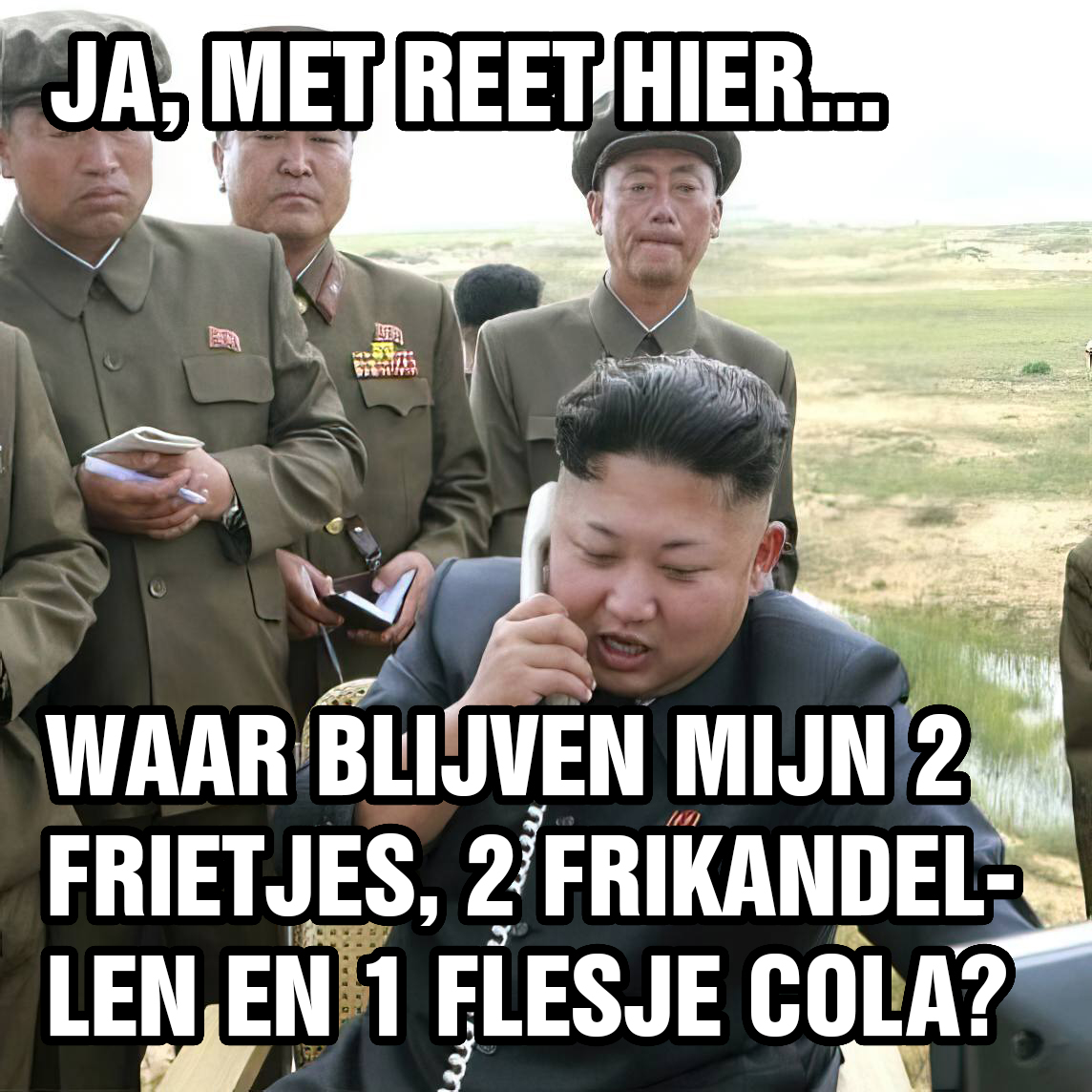 Een RC-chat specifieke is die van Onze Grote Leider die licht geagiteerd iets in een *telefoonhoorn blaft: