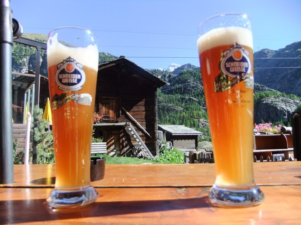 Toen een dagje bergklauteren in Zermatt een beetje uit de hand gelopen (/seth) was, we we om vijf uur ’s middags met allang lege waterflessen het eerste terrasje in de bewoonde wereld aanklampten, was daar gelukkig Schneider Weisse vom Fass. Op dat moment onbetwist de allerlekkerste drank ter wereld en sindsdien nog steeds een favoriet.