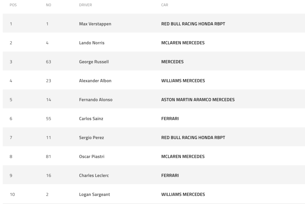 De Zandvoort Grote Prijs van Nederland F1 2023 is namelijk aan. De grid ziet er ongeveer zo uit, en ongeacht hoe iedereen de eerste bocht doorkomt zal VER wel weer vooraan rijden voor ronde 14. Immers is de regel “Verstappen wint tenzij hij dood is *en* begraven”. Alleen dood is geen excuus.