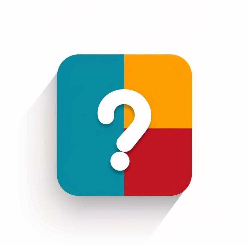 (squared with round edges mobile app logo design, flat vector app icon of an Question mark. minimalistic, white background)