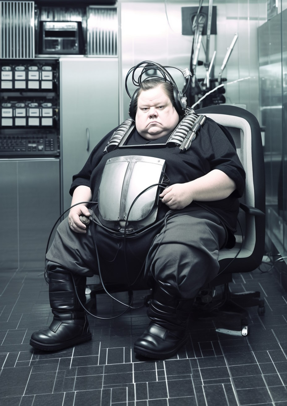 photo in style of H.R. Giger, obese Neanderthal sitting in a lab with a Electroencephalography EEG helmet, setting in a empty floor of a modern building, full body, future tech, sci fi, dystopian, detailed face, detailed arms, full body portrait, photograph, exquisite detail, 30-megapixel, detailed face, detailed arms, full body portrait, exquisite detail, 85-mm-lens, diffuse-back-lighting, award-winning photograph, monovisions, small-catchlight, low-contrast, depth-of-field, ultra-detailed photography, Ultra-Wide Angle, hyper-detailed, beautifully color-coded, beautifully color graded, insane details, intricate details, Unreal Engine, Cinematic, Cinematic Lighting, Editorial Photography, Photography, Photoshoot, Shot on 22mm lens, Depth of Field, DOF, Tilt Blur, Shutter Speed 1/1000, F/22, White Balance, 32k, Super-Resolution, Megapixel, ProPhoto RGB, VR, Lonely, Good, Massive, Halfrear Lighting, Backlight, Natural Lighting, Incandescent, Optical Fiber, Moody Lighting, Studio Lighting, Soft Lighting, Volumetric, Contre-Jour, Beautiful Lighting, Accent Lighting, Global Illumination, Optics, Scattering, Glowing, Shadows, Rough, Shimmering, Lumen Reflections, Screen Space Reflections, Diffraction Grading, Chromatic Aberration, GB Displacement, Scan Lines, Anti-Aliasing OpenGL-Shaders, GLSL-Shaders, Post Processing, Post-Production, Cel Shading, Tone Mapping, 8k, CGI, VFX, SFX, HDR –no bones,skull,skeleton, –ar 7:5