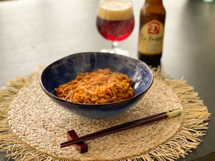 Hopla, fluks knalde ik de familieverpakking noodles in mijn mandje en op naar de zelfscankassa om zo min mogelijk tijd te verliezen. Want als er met pikant eten iets te winnen valt, sta ik met liefde vooraan. Afrekenen, naar huis en bereiden maar.