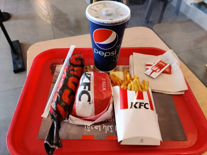 “Naast het wrapmenu met extra spicy friet (mwa) had ik ook voor de zekerheid een Zingerburger bijgesteld, die licht pittige kipunit van de KFC zodat er een beetje vergelijk was.”