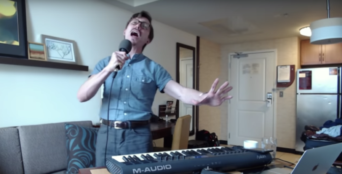 Daarom was ik zo vriendelijk iets op internet te vinden waar u dan naar kunt kijken, om uzelf af te leiden van uw onvervulde emotionele verlangens. Want kent u Marc Rebillet al? Een walgelijk getalenteerde jongen die zonder noemenswaardige voorbereiding in zijn eentje zalen plat speelt met ter plekke uit de mouw geschudde muziek.
