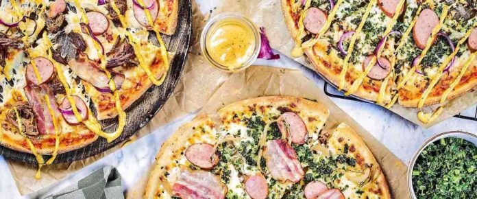 En pizza uit de reeks winterwarmers: “Tomatensaus, mozzarella, rode ui, boerenkool, rookworst en mosterd Dijonaise saus!”, zo laat de webstek van Domino’s ons weten. In dezelfde reeks is er ook een Rook’n Worst pizza en de Farmer D’Luxe, allen met rookworst als grootste gemene deler