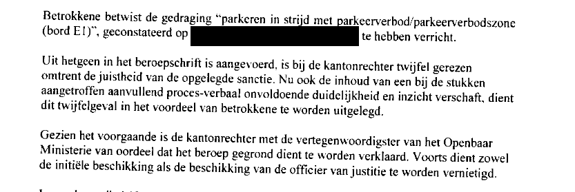 Maar volgens de Officier was de bekeuring echt toppiejoppie in orde en was er geen enkele reden om te twijfelen. De rechtbank dacht daar anders over: