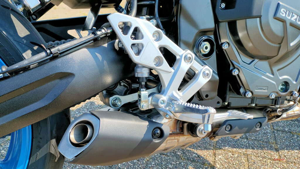 Mooi? Ach, je eigen kind is altijd mooi. Verder vallen de korte uitlaat op en het demontabele subframe. Die de knipper-achterlicht/kentekenplaathouder … de tering Suzuki, moest dat nou?