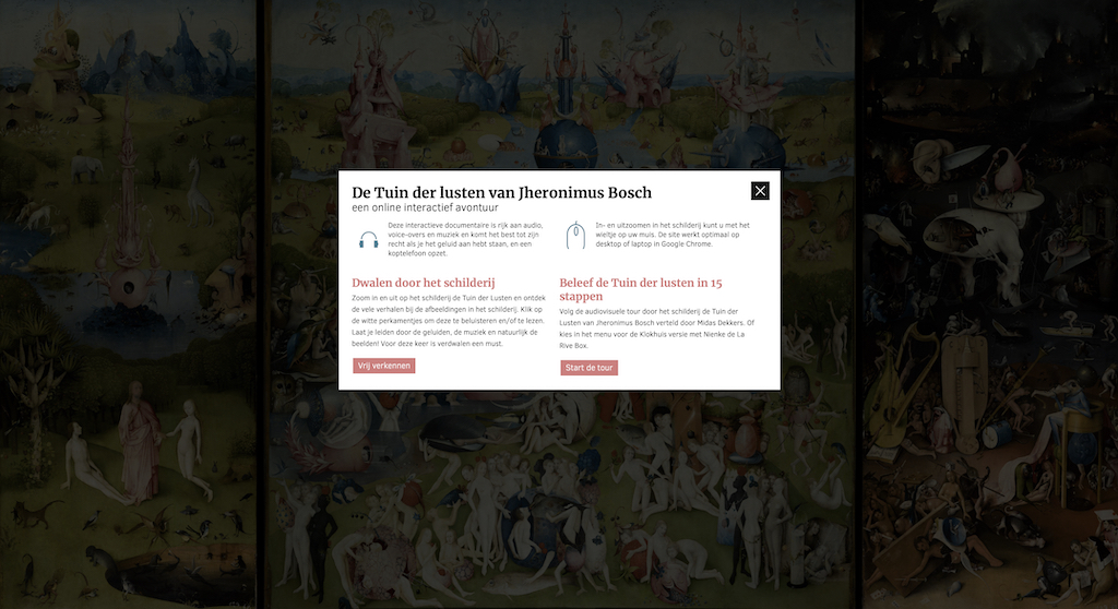 Dit extraatje zou eigenlijk op zichzelf al postwaardig zijn: De NTR heeft namelijk VAN UW BELASTINGCENTEN een geweldige site over het schilderij in elkaar gezet. U kunt er tot in het kleinste detail inzoomen en bij ieder onderdeel van het schilderij is gesproken en/of geschreven uitleg te raadplegen. U kunt de audiovisuele tour nemen of ervoor kiezen om lekker vrij door het schilderij te dwalen. Echt geweldig!