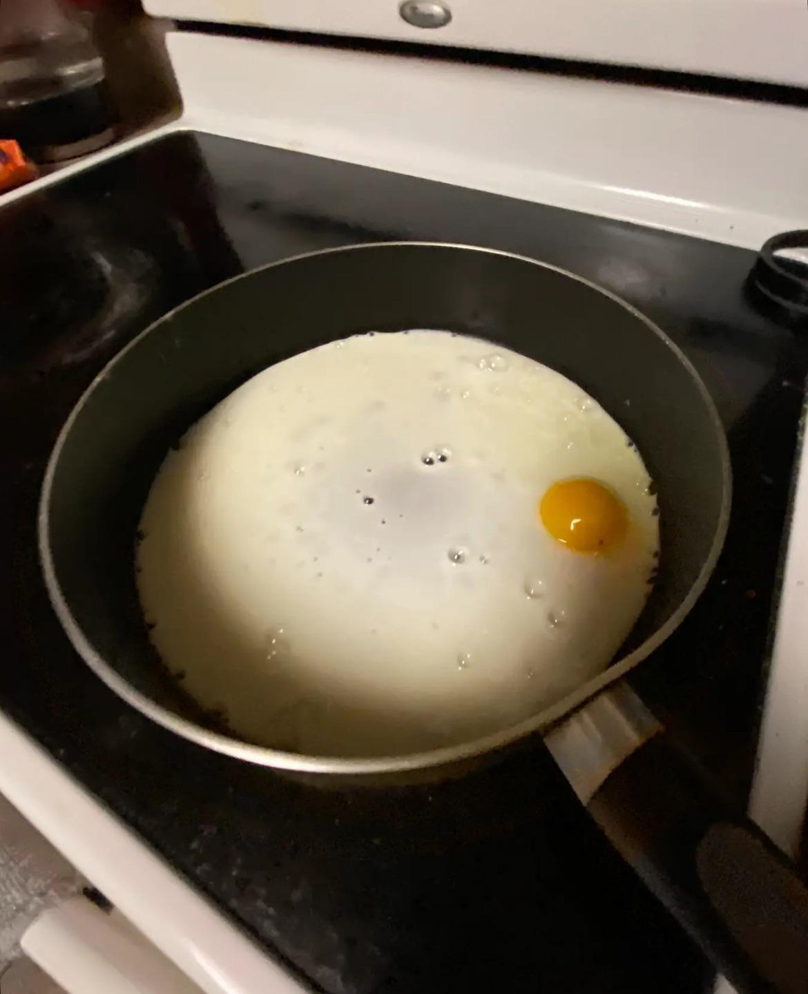 Want is thans, omringd door stevig wit, EEN SPIEGELEI!