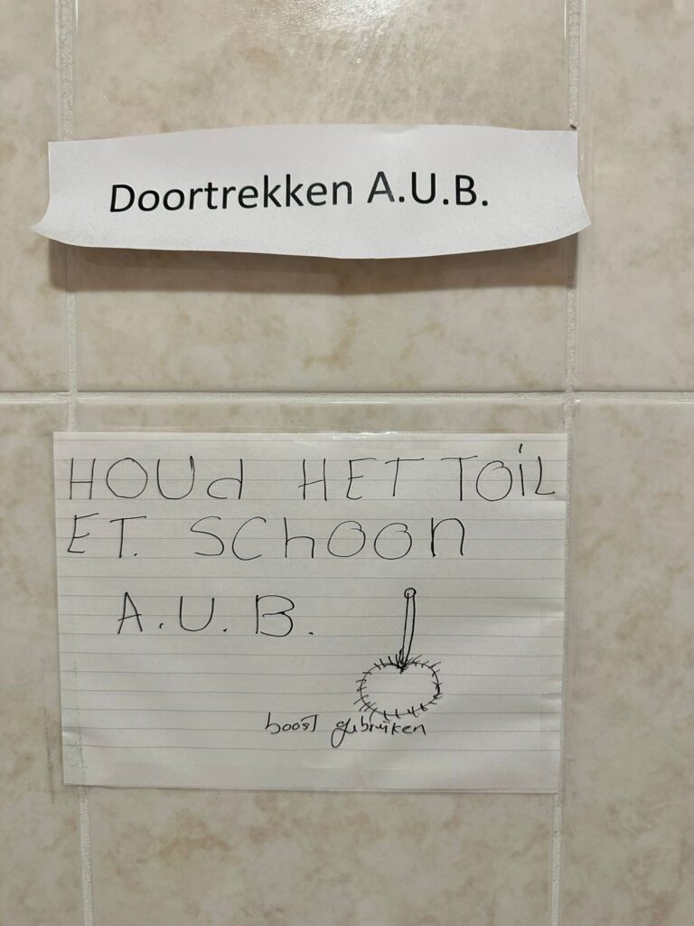 Alle interne communicatie in het studentenhuis werd verzorgd door Diederik. Die had Nederlands gestudeerd en dat kon je zien hoor!