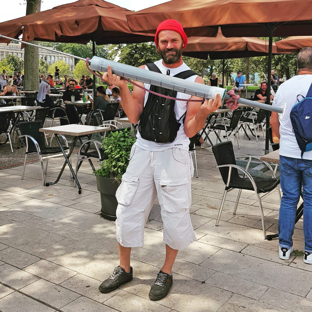 Willem liet trots zijn nieuwe ballenpomp zien.