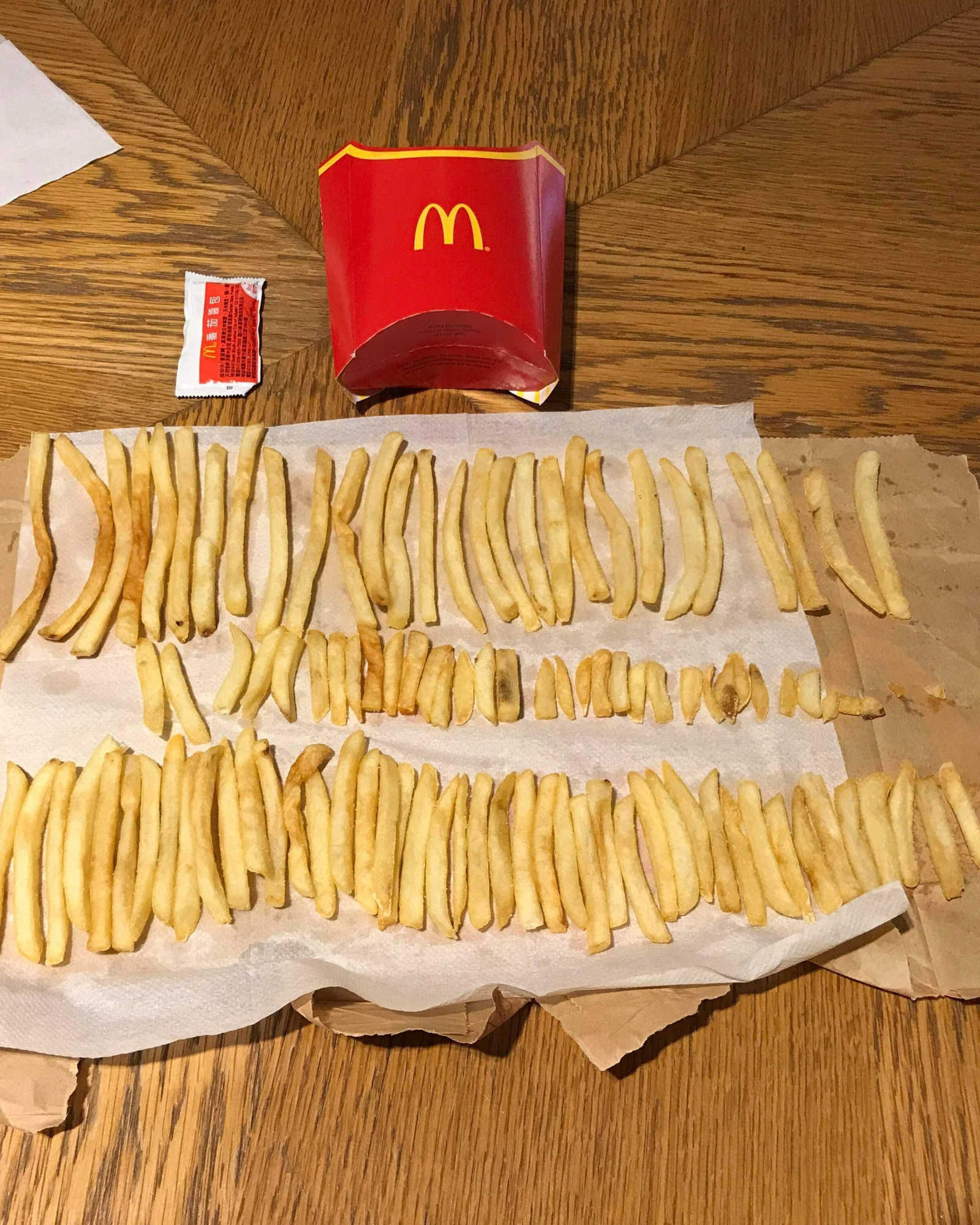 De ober van McDonald’s serveerde een mooie compositie Franse frieten op mijn bordje.