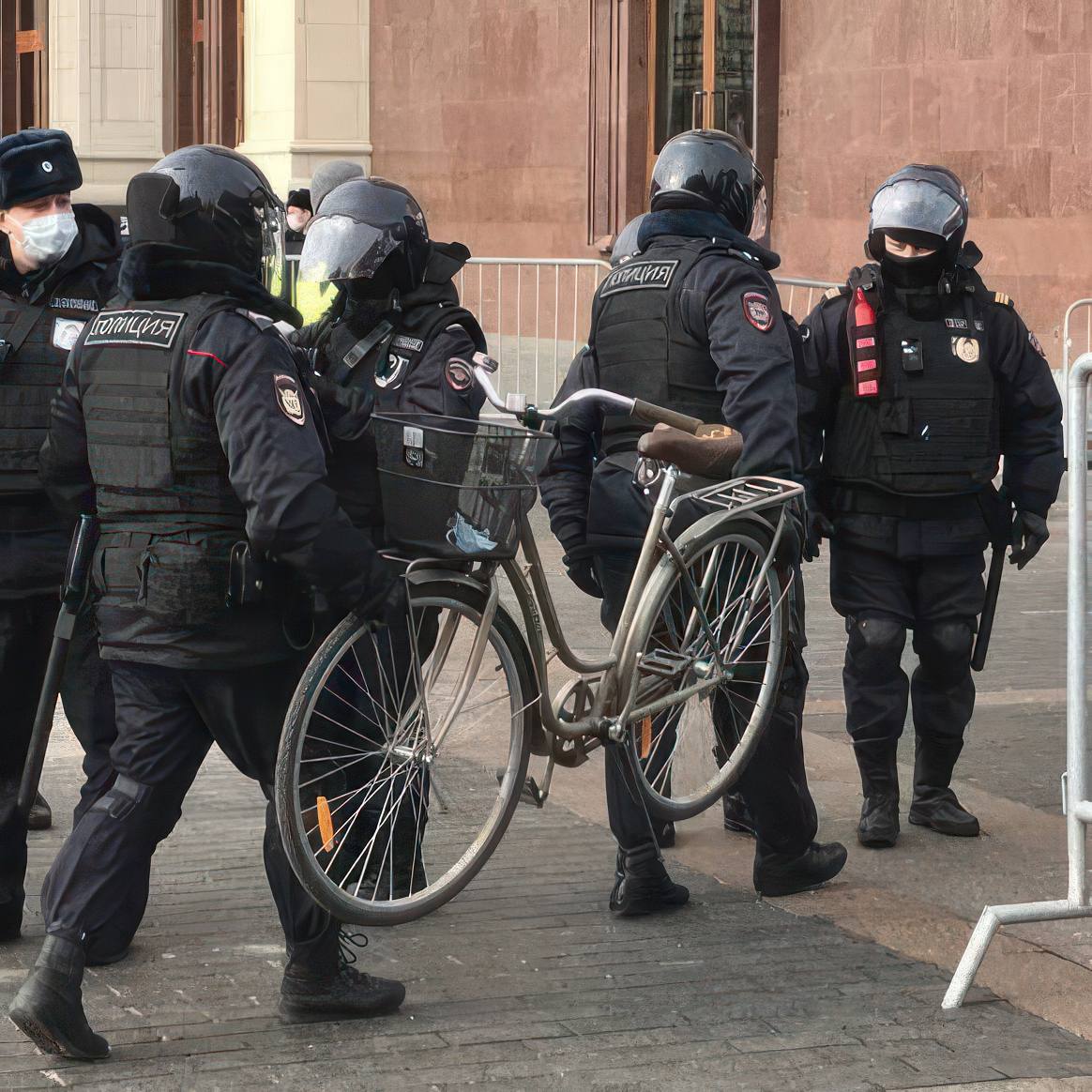 De militaire politie in Rusland heeft het ook op een oude fiets geleerd.