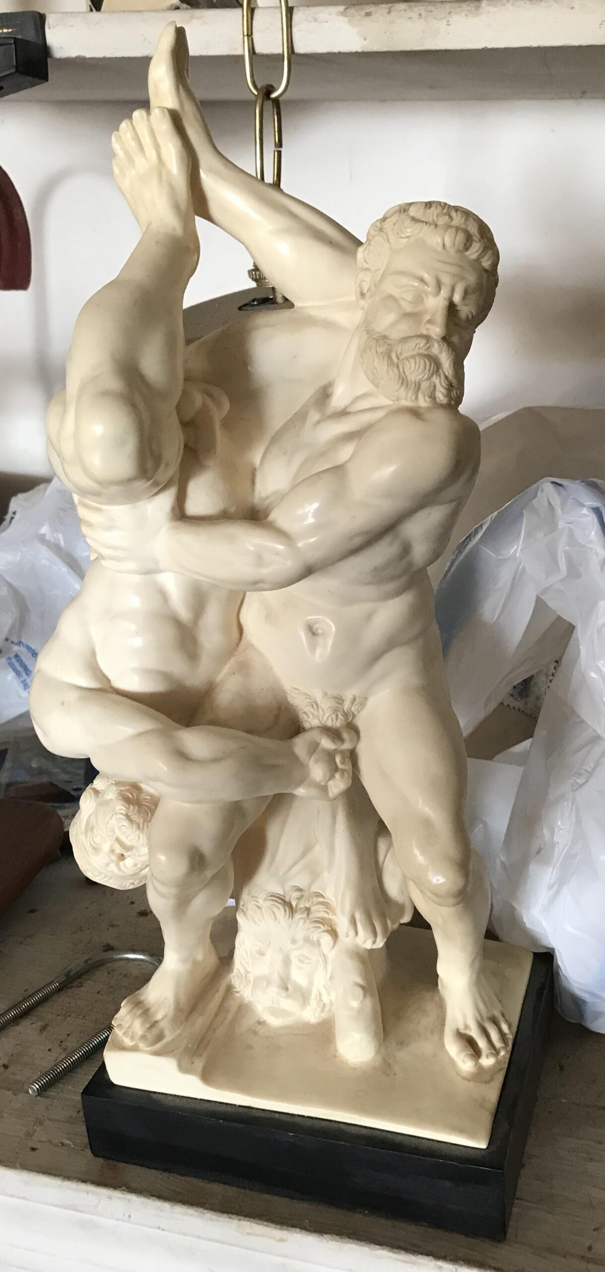 We zien hier een prachtig beeldje met een voorstelling uit de Griekse mietenlogie.De Pielias van Homorus.