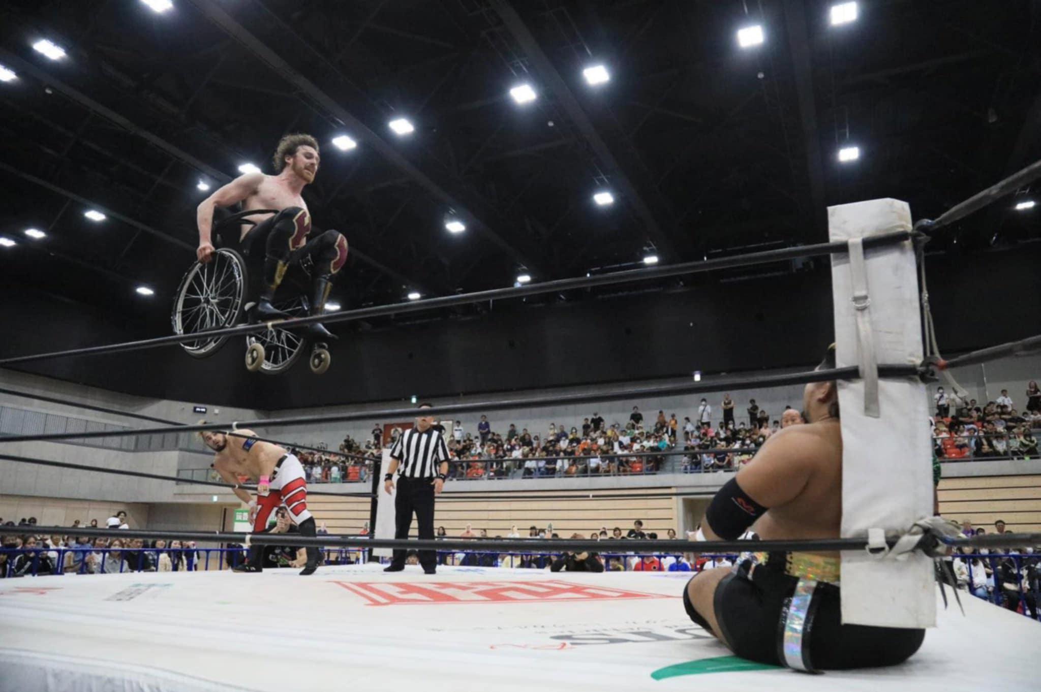 Reet laat de wereld versteld staan met een dubbele Balmain Friedmann zero gravity introverted flac. En dat alles in een impromptu uit het publiek gejatte rolstoel. Helaas werd hij nog tijdens de landing KO geslagen door zijn tegenstander, wat ietwat afdeed aan de grandiositeit van de uitvoering.