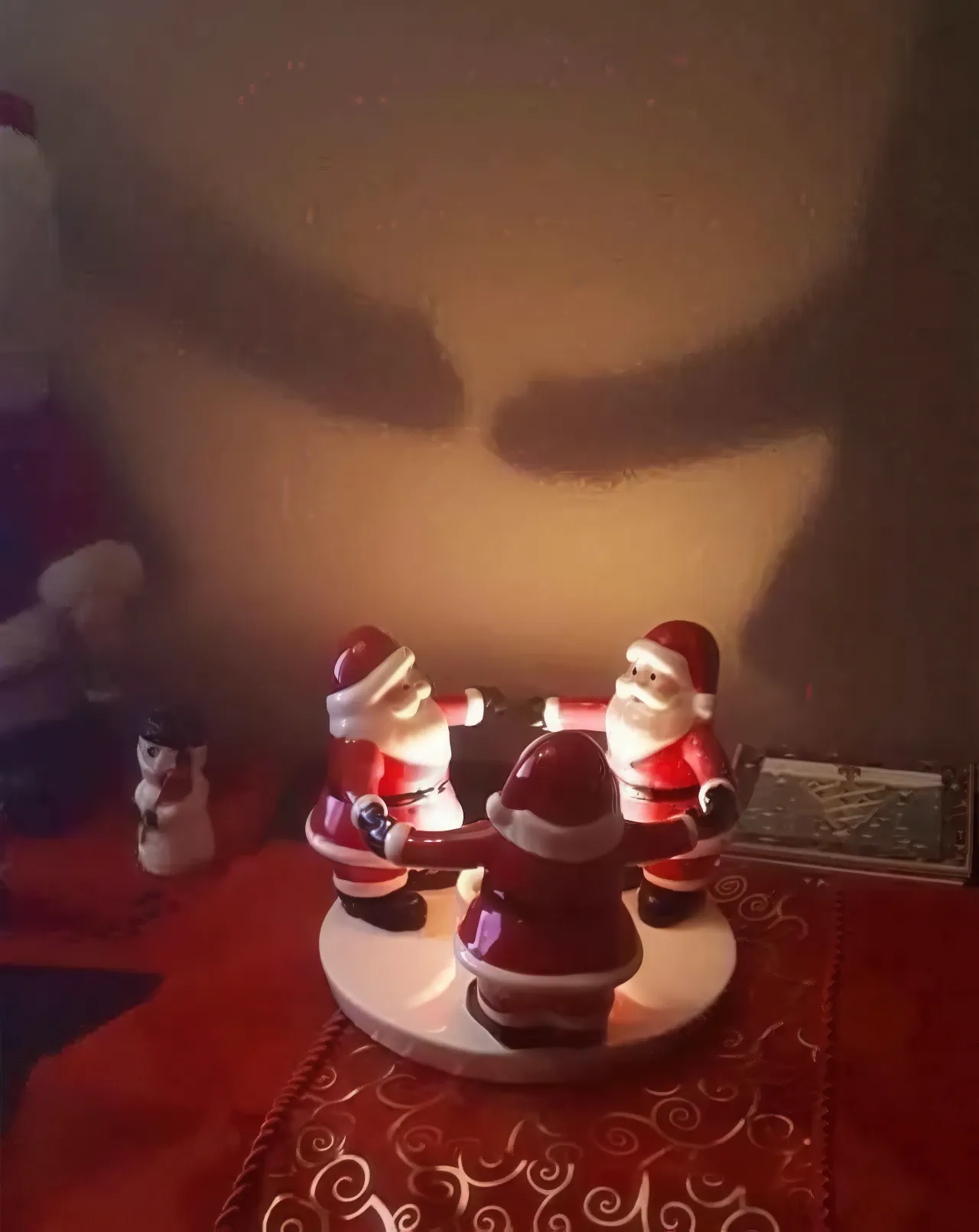 Ja jongens, als ome kerstman al die pokke pakketjes bezorgd heb, wil die ook wel ff relaxen hoor. Lekker met de andere kersmannen die kerspiek ff aandacht geven.