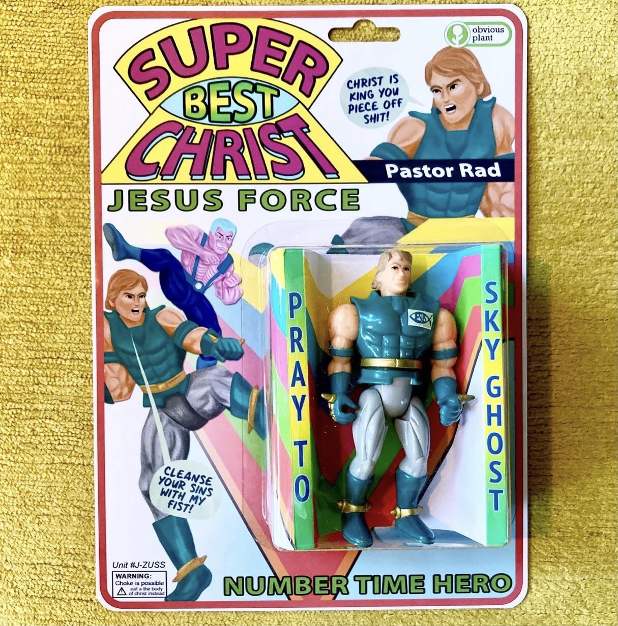 Dominee Ploppo was totaal niet onder de indruk en stuurde Superchrist 7 maal 40 maal door brandende braambossen (voor een plastic action-figure best wel fataal).
