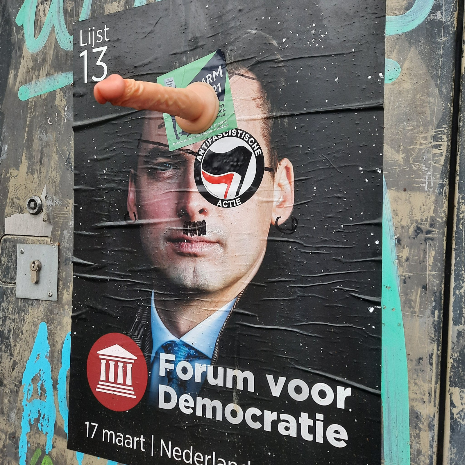 De retedactie maakte al gauw korte metten met de FVD-poster die op de bunker was geplakt.