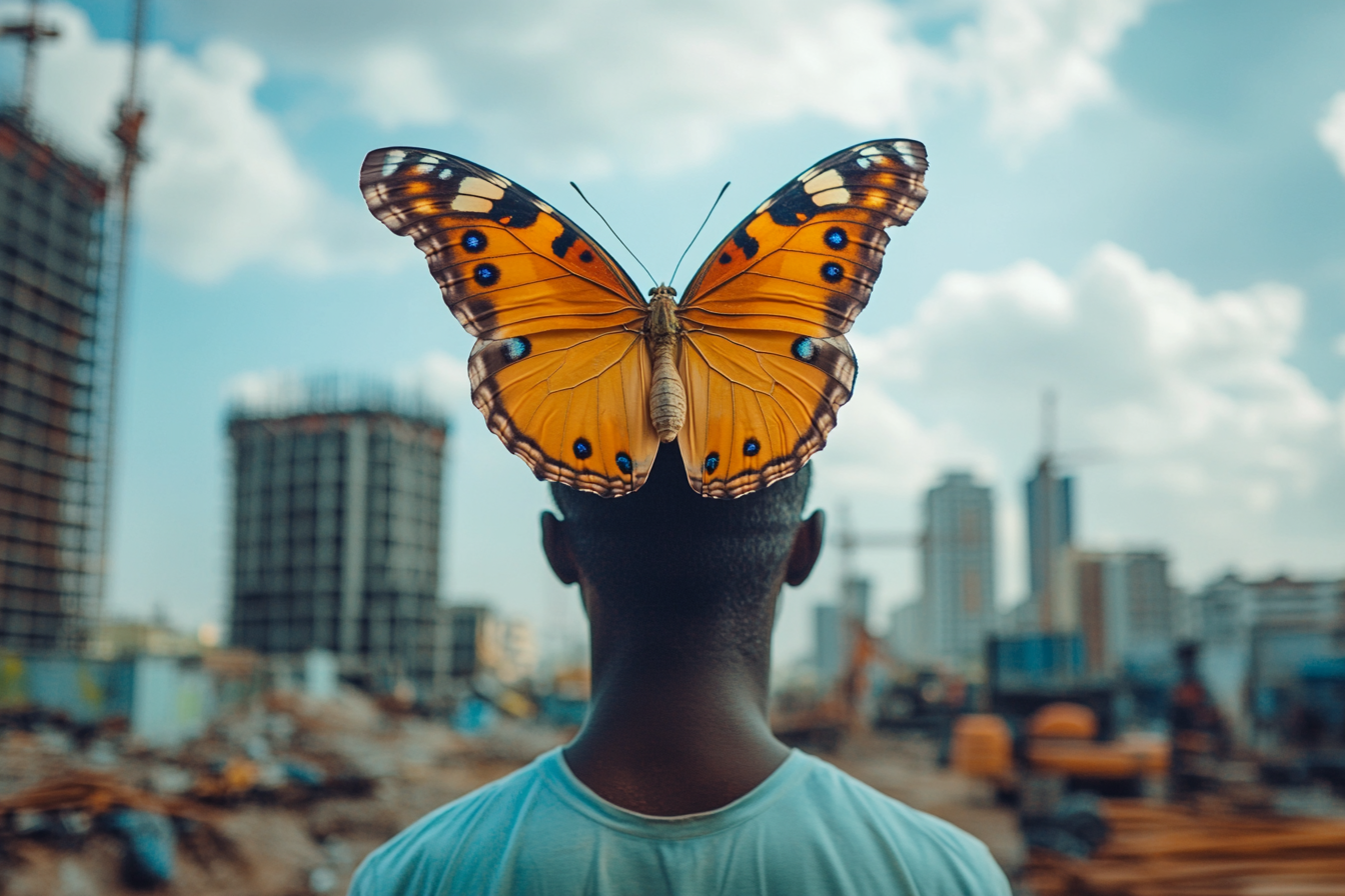 Photoshop? Photoshop me reet! D’r zit gewoon een megavlinder op me hoofd.