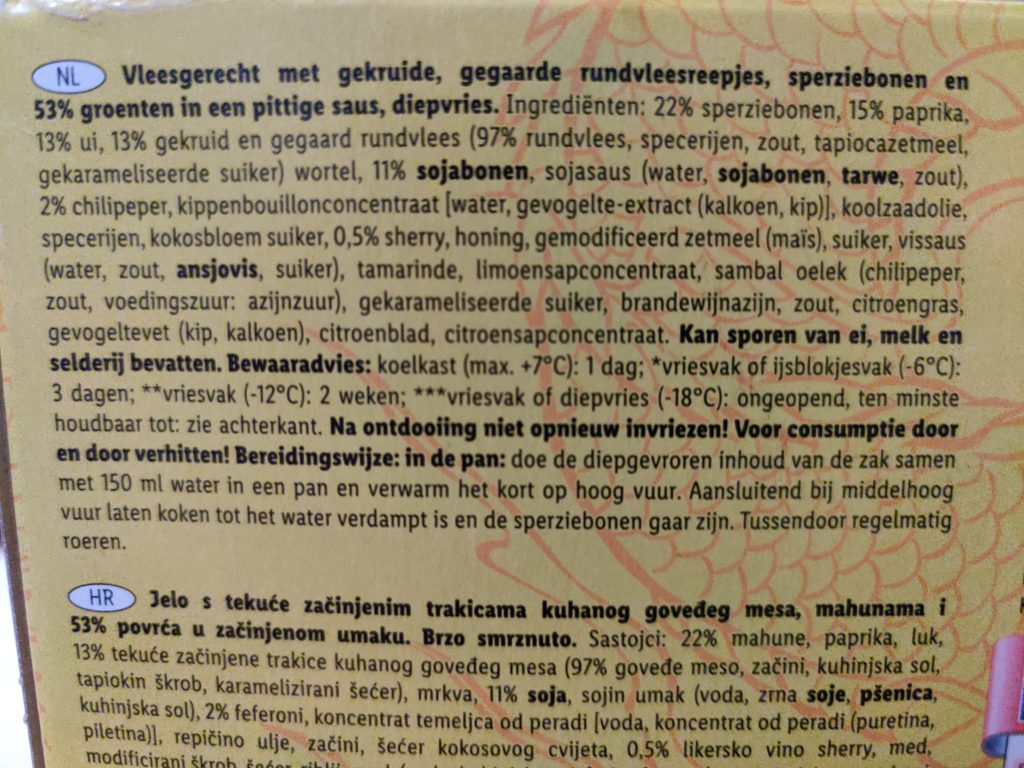 Er zit zelfs 0.5% van de FvD frontman in dit gerecht! Het opwarmen is eenvoudig, pleur water in een pak, zakje erbij en roeren. Wel jammer dat het recept zo onduidelijk is over de exacte bereidingstijd, want er zijn hordes mensen die niet weten wanneer sperziebonen gaar zijn. WEES EENS CONCREET!