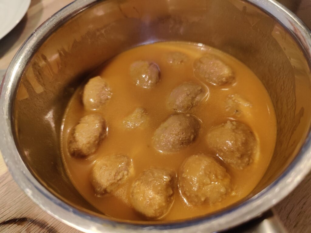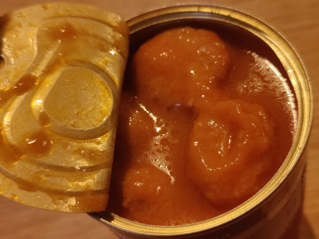 Stevige ballen in een heerlijke jus. Van de Aldi. Dat zijn heel veel claims. Aan de andere kant van de ring staat een blik kipgehaktballen uit Spanje.