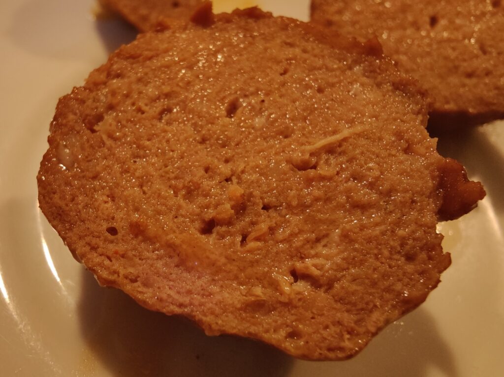 Deze gehaktballen moet je niet als gehaktbal bij het avondeten nemen maar gewoon als “tssendoortje” op een afgebakken broodje. Dan zijn ze wel te eten al waren de gehaktballen…of de “geschoren apenballen” van Lupac beter weg te slikken.