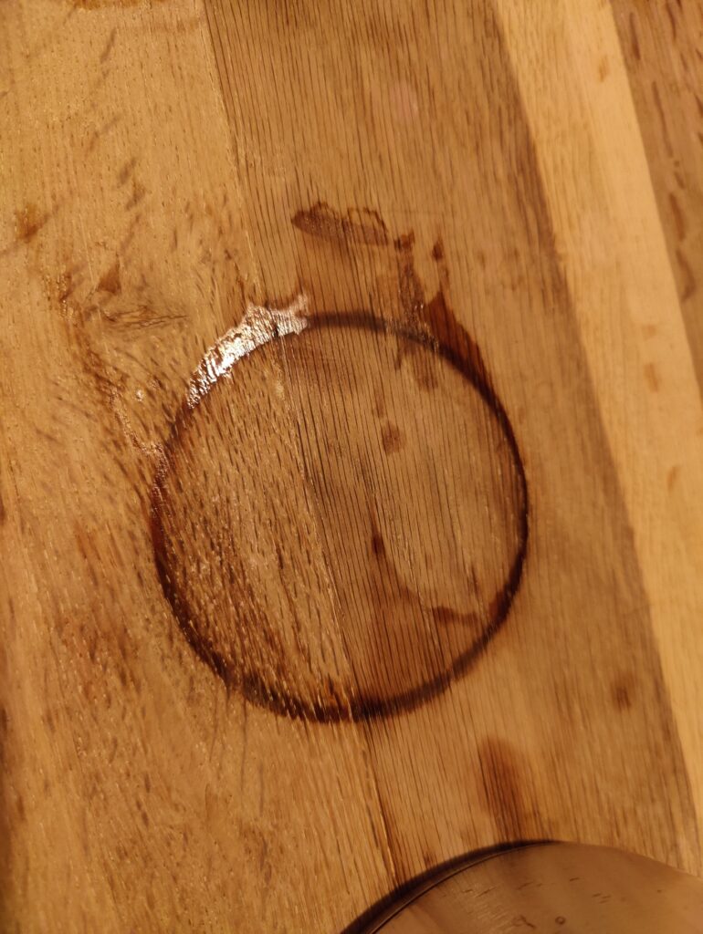 Gek genoeg liet het blik een onverklaarbare ring achter op de bunkertafel. Keihard hout en die Spanjolen branden er gewoon doorheen met blikvoer.