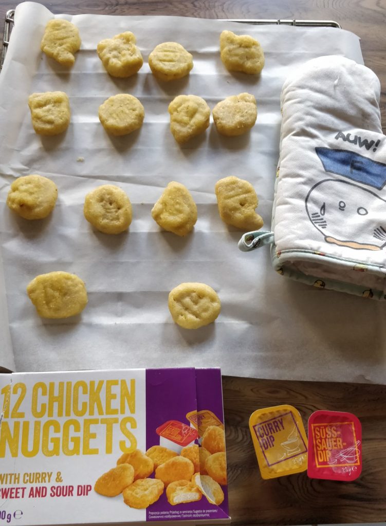 Vandaag de nuggies met Curry en Zoetzure saus van de huistraiteur Lidl.