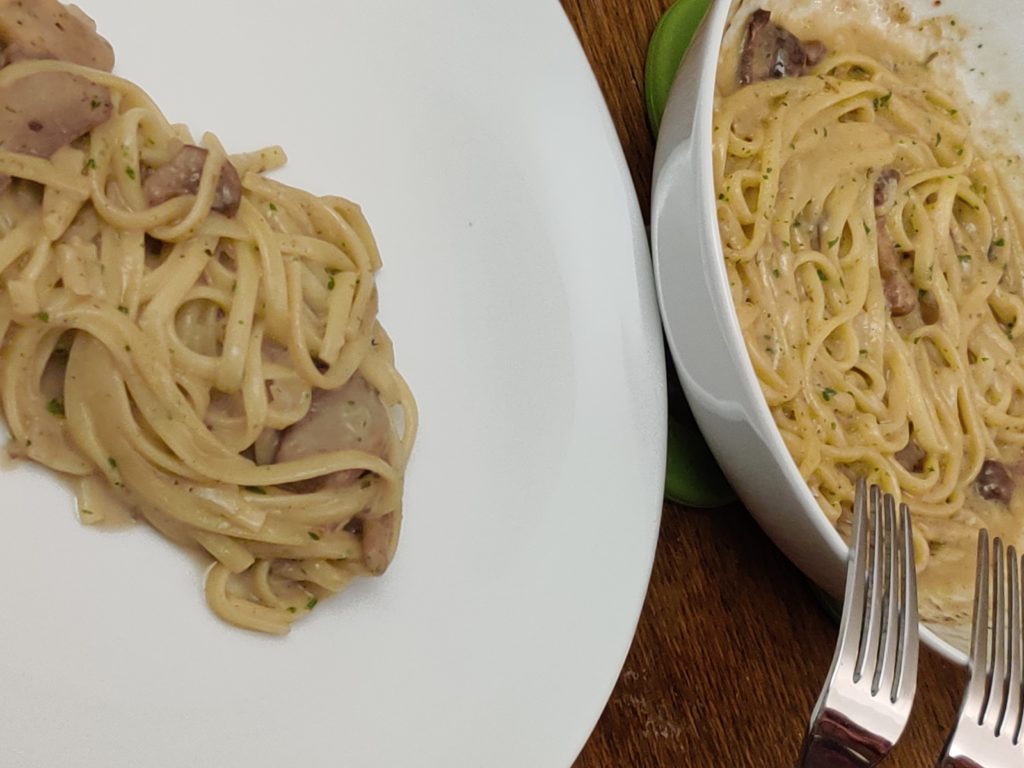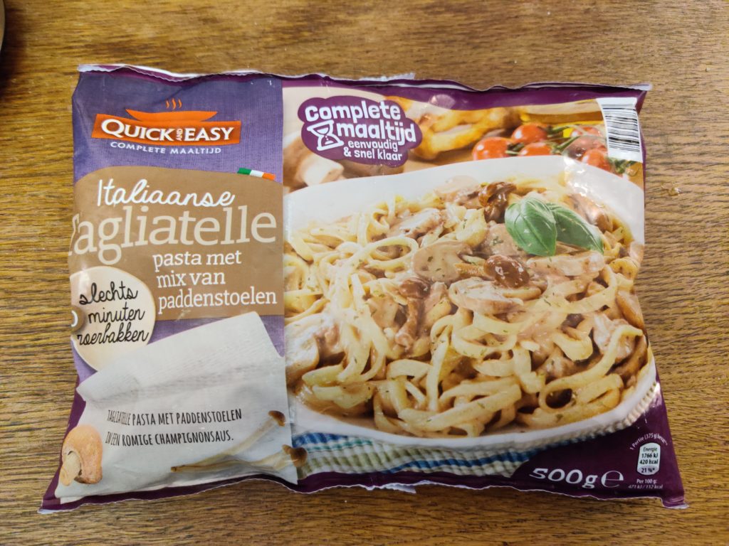 Quick and easy. Zo hebben we onze vrouwen en eten het liefst. En heet. Maar dan niet zoals die typhusgehaktbal. Want die was smerig. Anyway, we stonden bij de ALDI bij de vriezer, naast de diepvriessaté. Daar hadden ze een tagliatelle met mix van paddestoelen.