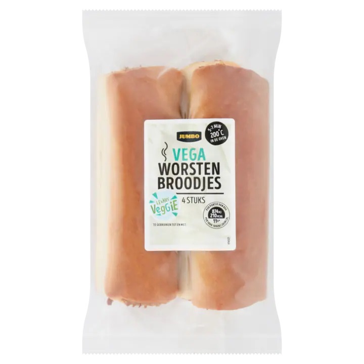 Wie als een spreekwoordelijke baksteen zou zakken voor de Brabantse Appelation aanvraag is ongetwijfeld de Jumbo, meer in het bijzonder met de 4 koelverse afbak Vegan Worstenbroodjes die sinds kort in het assortiment zijn te vinden, 4 stuks voor 3.89 euro. Nou meen ik in alle bescheidenheid wel een en ander te weten over dit onderwerp *kuch* maar zelfs een blind paard kan zien dat dit product een niet meer te overbruggen bak strafpunten zal krijgen, alleen al op uiterlijke kenmerken. Nou ben ik de laatste die anderen de maat moet nemen op uiterlijke kenmerken, dus snel de oven aan en die krengen erin, het gaat tenslotte niet om ons uiterlijk, maar om hoe u en ik, wij met z’n allen dus, smaken. Nou ja, het innerlijke karakter in feite. U begrijpt wel wat ik bedoel. Ik wil er eigenlijk niet eens over nadenken hoe jullie smaken.
