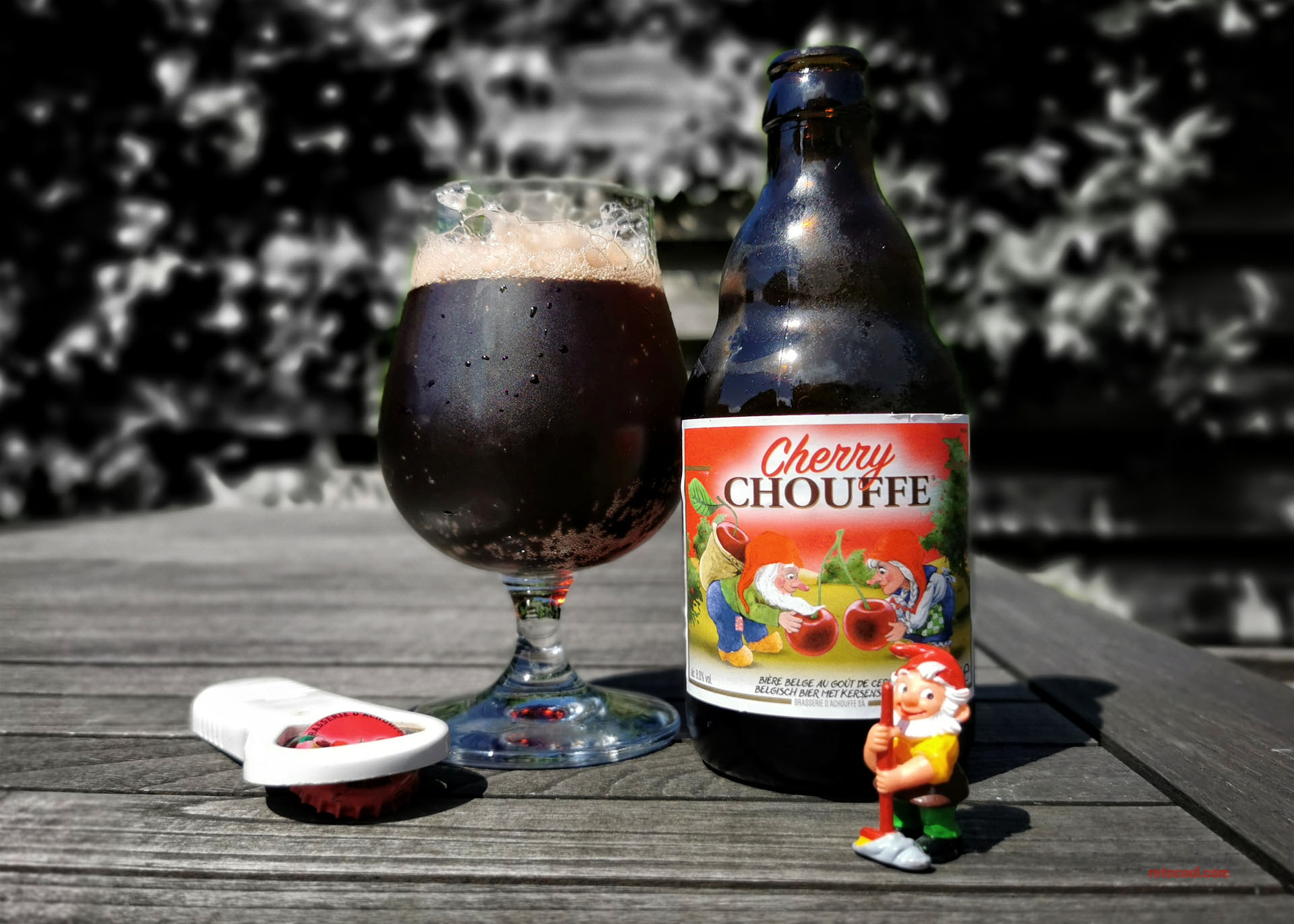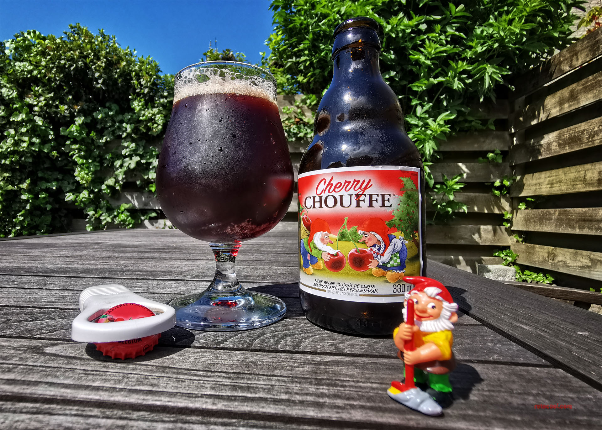 Nu is er een nieuw hoofdstuk in deze commerciële teloorgang; La Chouffe Cherry. Het bekende sterke bier van 8% maar dan met kersensmaak. Als dit nog kriek is, dan is dit de Nieuwe Nieuwe Kriek, want alles gaat in de overdrive; te veel alcohol voor dit type bier, totaal gespeend van enige subtiliteit, maar vooral … zoet! Zoet, tyfus- tering- allejezus- godsgruwelijk- glazuurverwoestend- kaakkrampend- kutkankerzoet.