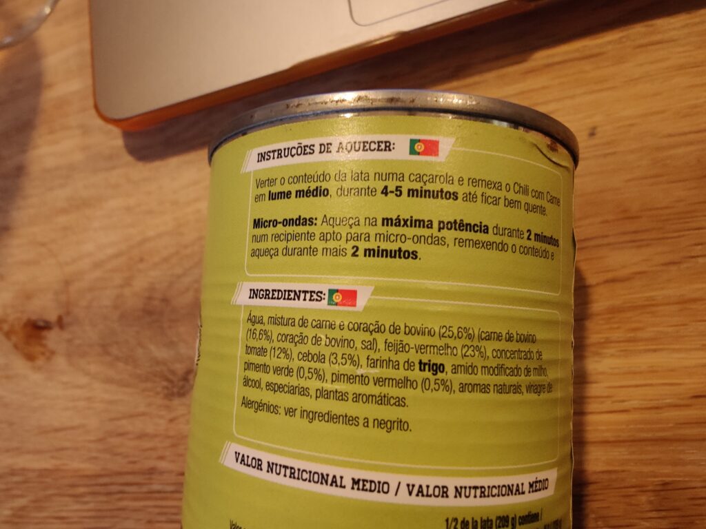 Hoppetee, nieuw blikvoer. Uit Spanje deze. Of Mexico. Of niet. Kletteren we het in de pan en het blikje lezen.
