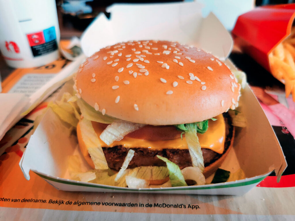 Een Beyondburger is best duur. Te duur om in een Mc-burger te gebruiken, dus kleiner, dunner en van goedkopere samenstelling?