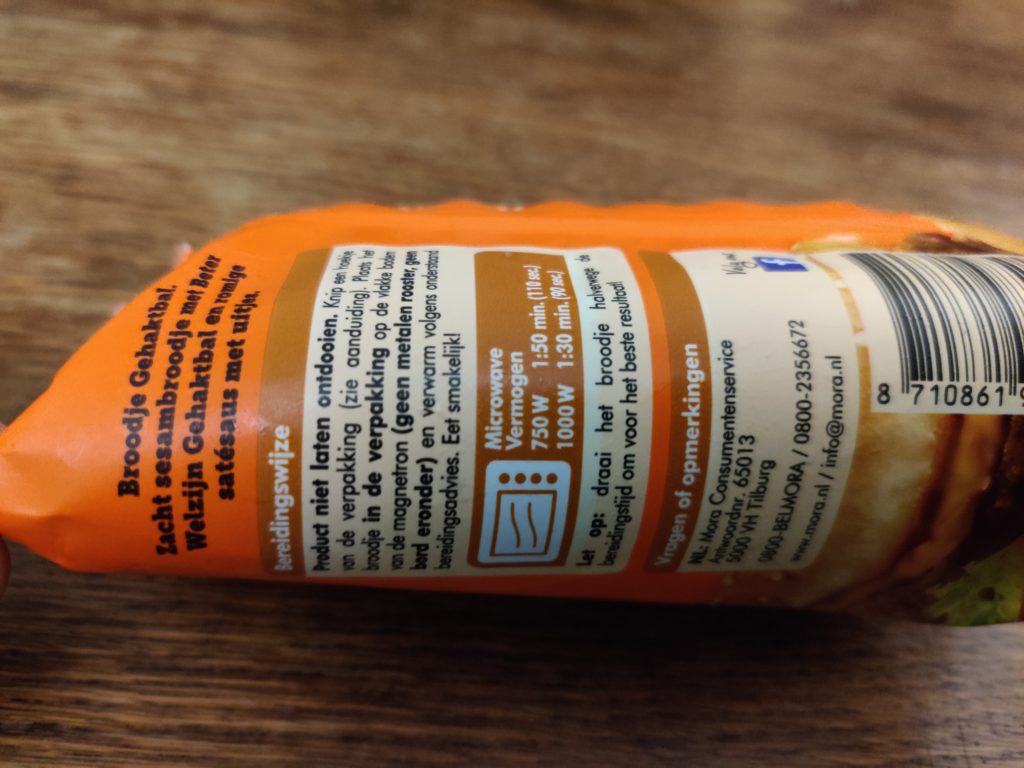Dat paard heeft zijn weg, in gepureerde vorm, gevonden in deze snack van de koningen van Mora. In de vriezer in de supermarkt in een verpakking, een gehaktbal in een broodje. Mocht u dus met uw vooruitziende blik inschatten dat u vanavond met “een paar biertjes achter de huig” binnen komt zwalken, bindend stemadvies, koop dit niet.