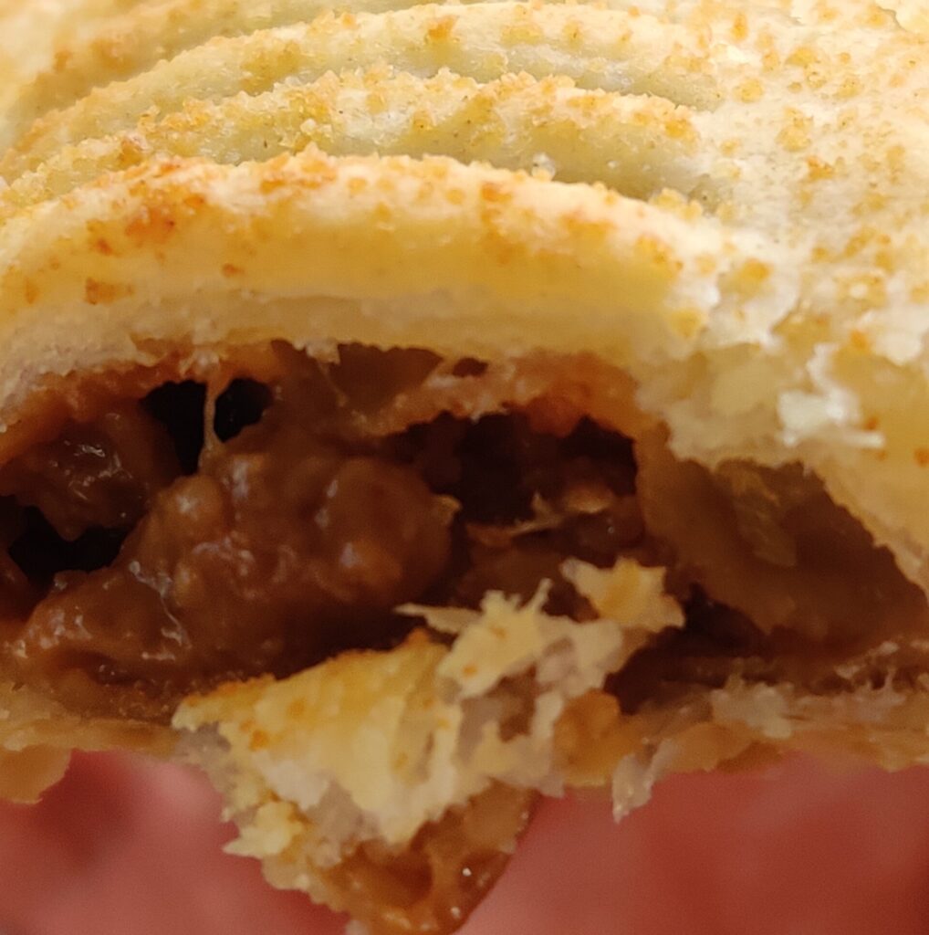 Er zitten zichtbare stukjes, maar een mondgevoel leveren die niet op. Uiteindelijk het hele ding naar binnengekregen. Prima vettig broodje voor 1,50 om de maag te vullen, is dit smaakvol? Nee.