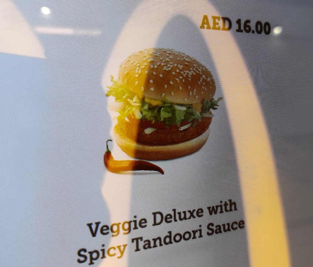 Tot dat moment bevinden we ons op de luchthaven van Dubai voor de overstap naar Amsterdam en daar bleek vlak bij de lounge een vestiging van de Mc. Die voerboer. Dus even snel het scherm bekeken en daar stonden twee burgers op die we best in een holle kies konden duwen alvorens te verhuizen naar de lounge.