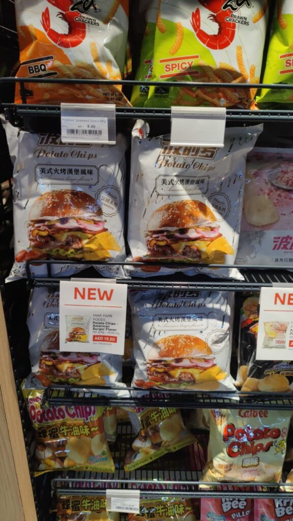 Het was nou niet bepaald goedkoop, 15.20 AED transfereert naar 3.72 eypo en das aan de prijs voor 97 gram chips.