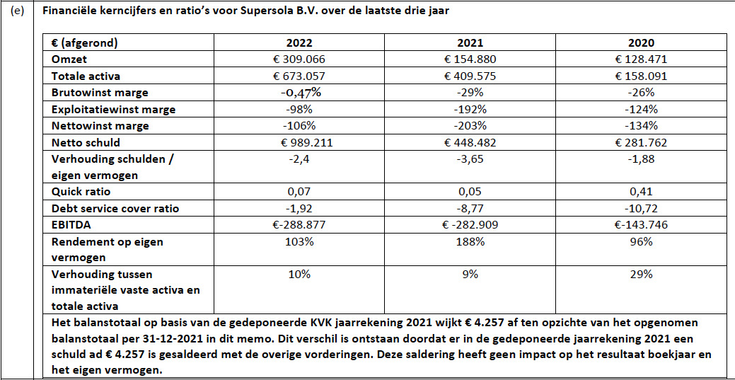 Als gekeken wordt naar de Essentiele Informatie voor beleggers van de aanbiedingspagina valt op dat het bedrijf de laatste 3 jaar verlieslatend is geweest, schulden heeft groter dan de obligatielening die ze maximaal hopen te vullen en de obligatielening achtergesteld is bij bijvoorbeeld bancaire leningen die al lopen (of nog komen). Als compensatie daarvoor wordt 10% in het vooruitzicht gesteld (netto 8.4% het eerste jaar en 9.4% voor de 4 jaar erna en dat is voor de nieuwe Box-3 heffing). Nog een opvallend puntje is dat de aandeelhouders/directie niet meedoen aan de leningen.